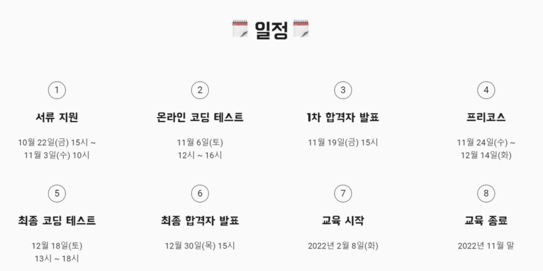진짜 개발자로 취업은 하고 싶은데, 내가 너무 실력이 모자른것 같다, 혹은 협업/실무 경험이 너무 없다하는 분들은 지원해봐도 좋을 것 같아요! 단, 코딩테스트를 보기때문에 비전공자분들은 지원할때 약간의 공부가 필요할 수 있어요!