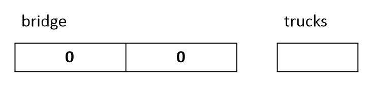 step1. truck의 무게들을 담은 trucks(Queue)와 다리의 길이만큼 0으로 초기화된 bridge(Queue)를 생성합니다.