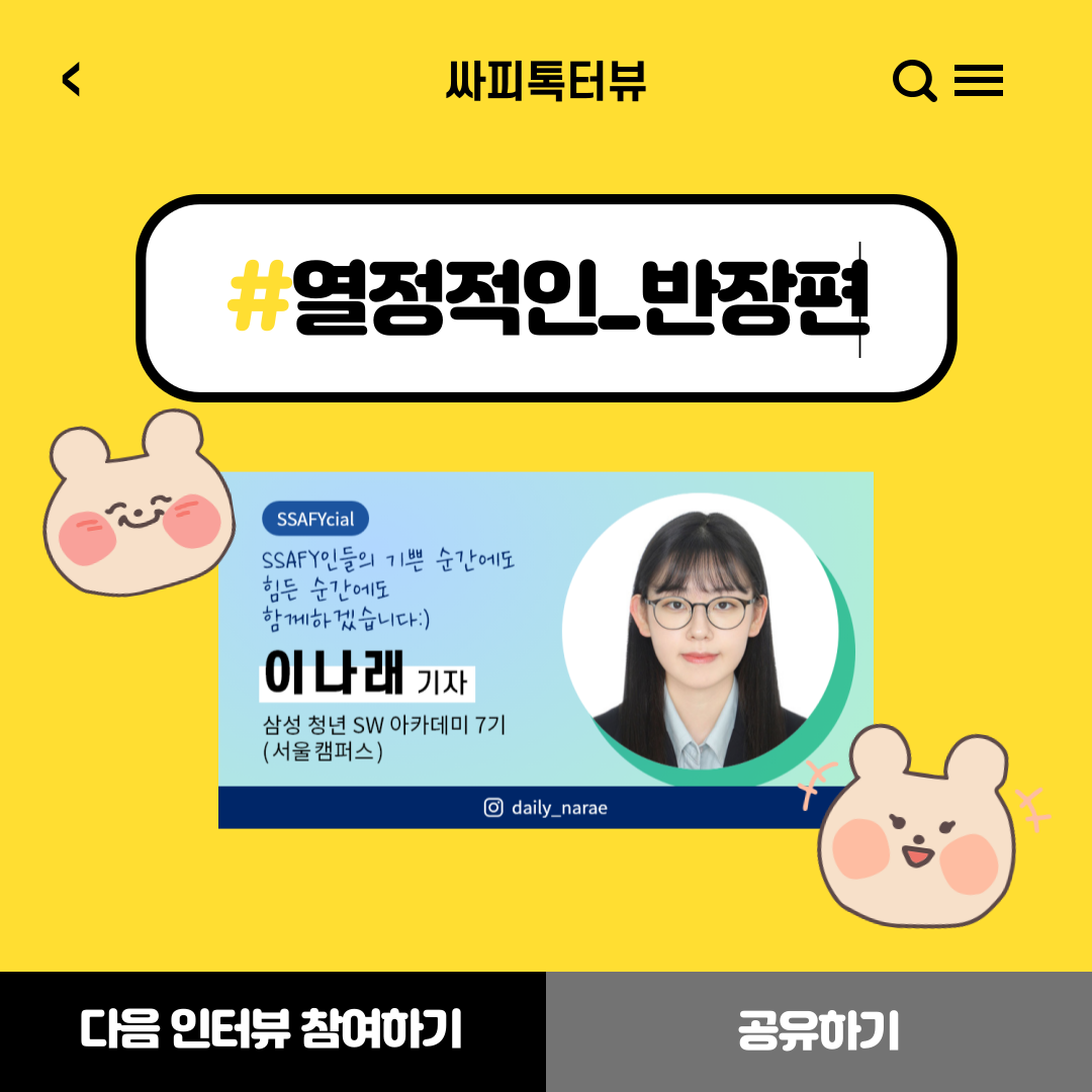 [SSAFYcial] 3월의 싸피톡터뷰 - 열정적인 반장편 본문