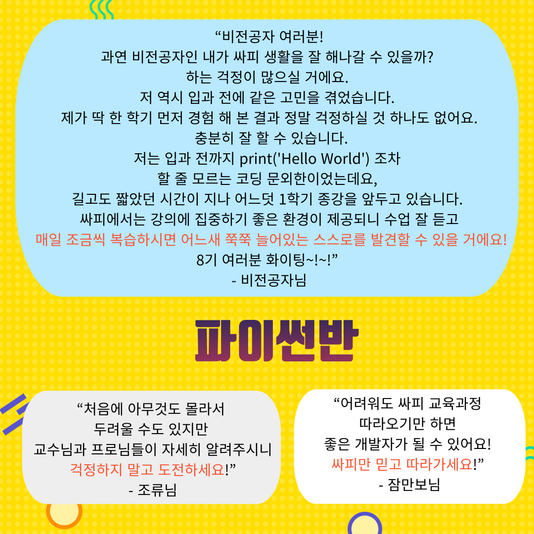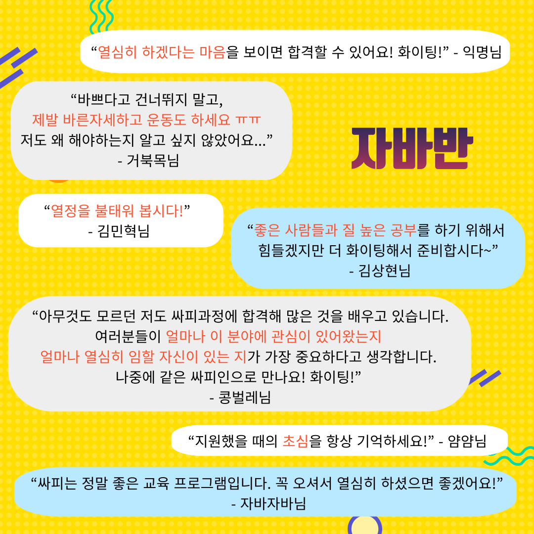 부디 이 메시지들이 예비 8기 여러분에게 힘이 되었으면 좋겠어요!