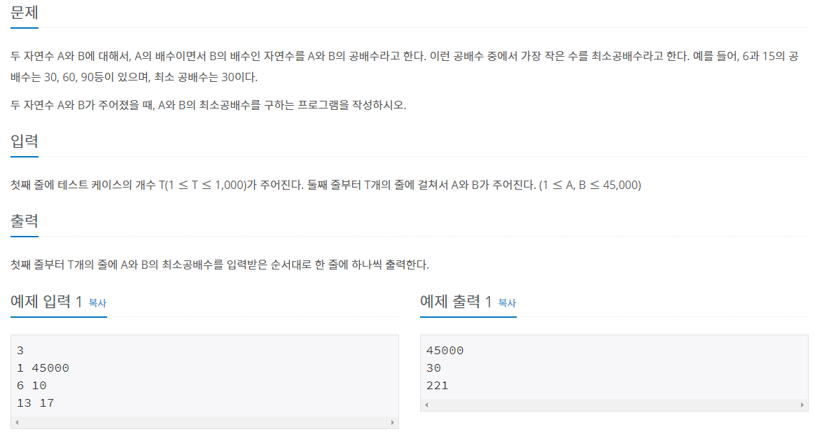 1934번: 최소공배수