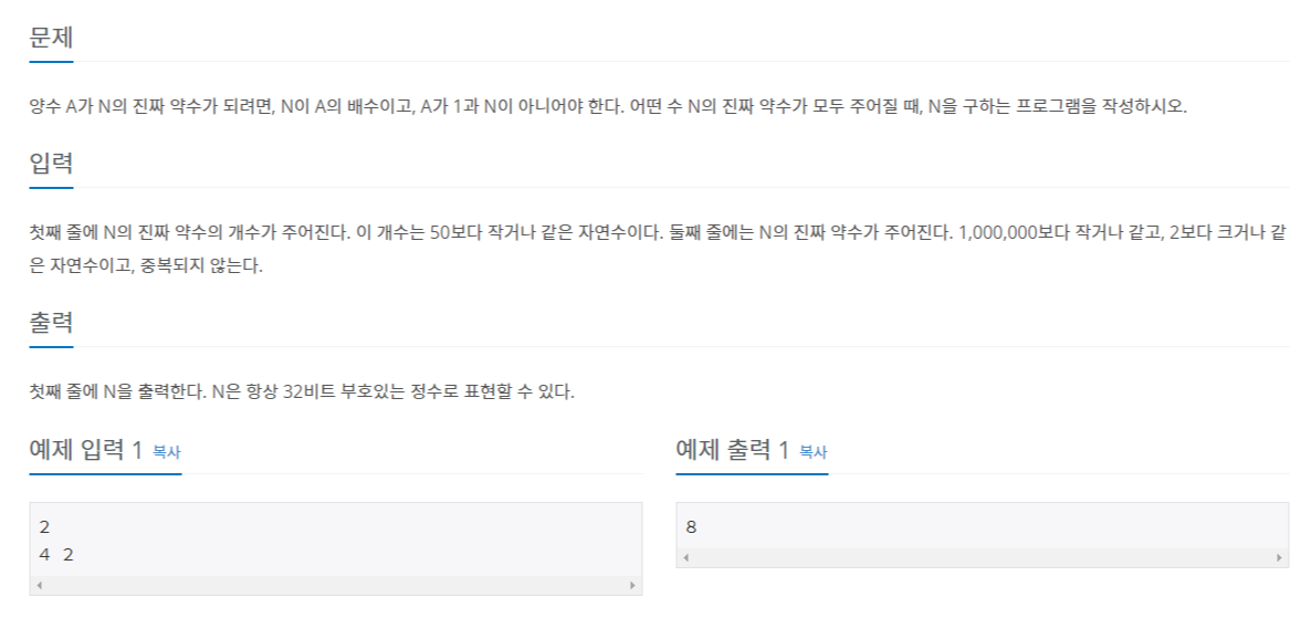 문제링크 : www.acmicpc.net/problem/1037
