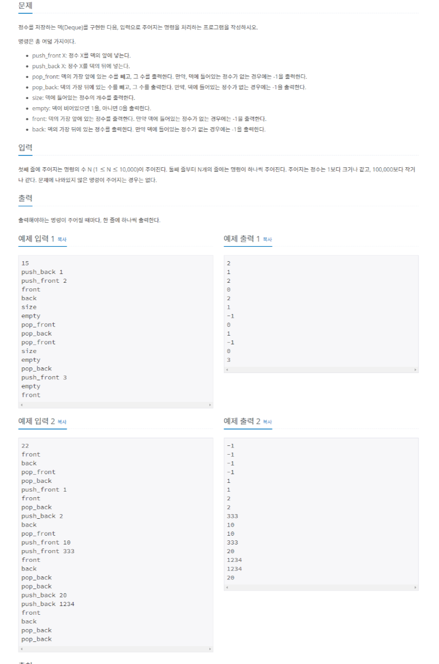 버전 1. STL<deque> 이용 ( 메모리 : 2020KB 시간 : 384ms )