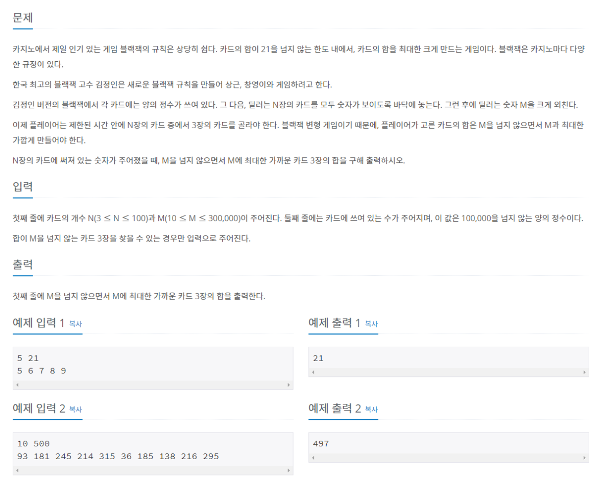 문제 링크 : www.acmicpc.net/problem/2798